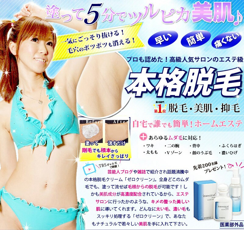 http://www.store-mix.com/ko-bai/product.php?afid=12512966&pid=1965025&hid=159691&oid=12240どんなに太い毛・濃い毛もスッキリ処理する「ゼロクリーン」で、貴女もナチュラルで若々しい【つるルン♪美肌】を手に入れてみませんか?
